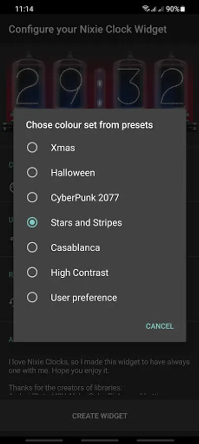 ★ Colour presets - you can pick up from a few holiday-themed, and pop-culture-themed colour presets for your clock