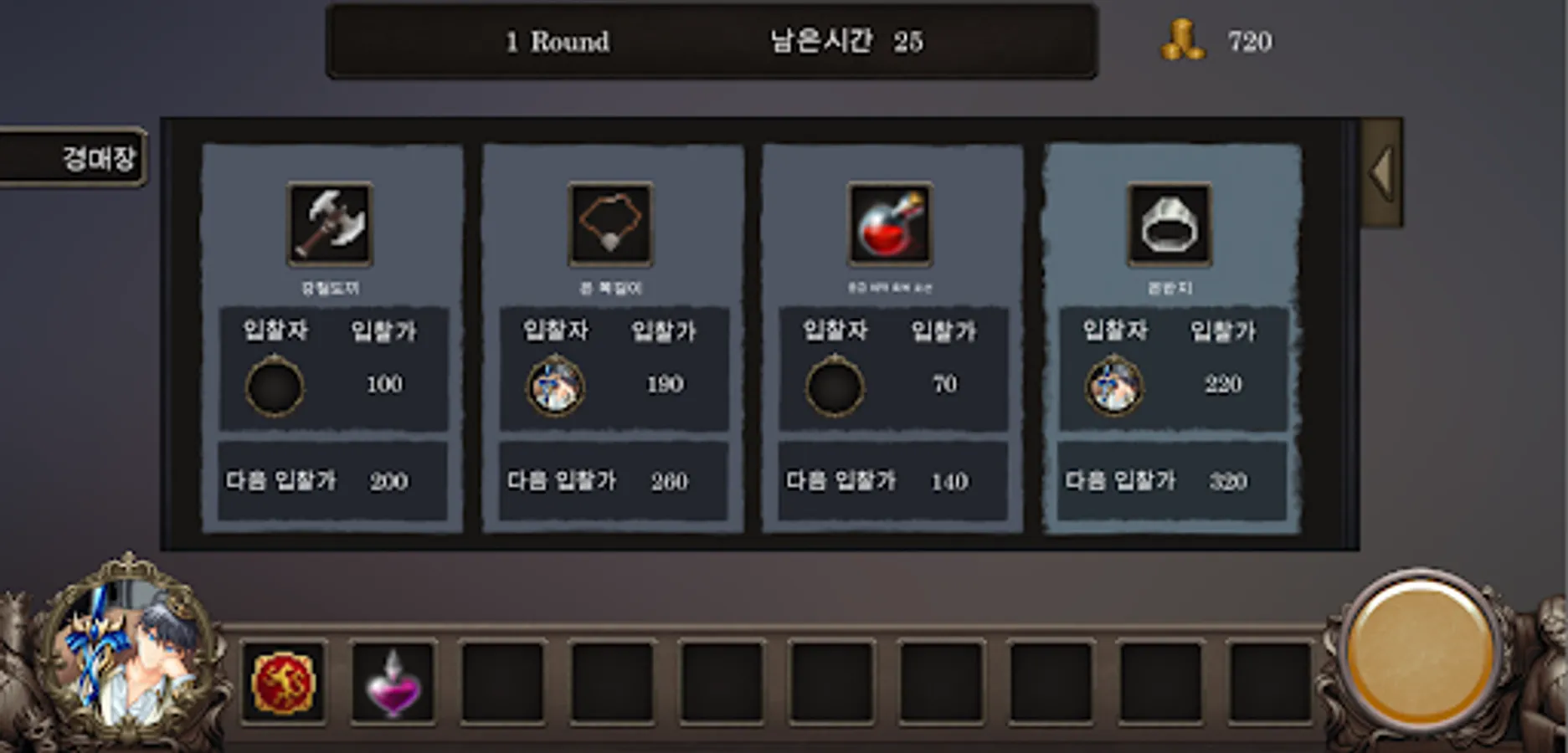 A tense real-time battle game with multiple users and an item competition using an auction system based on a tournament format
