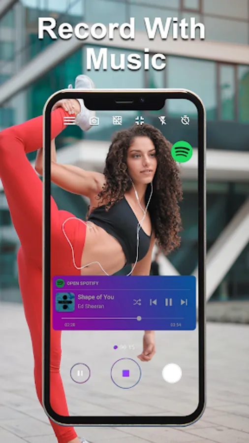 Connect to Spotify and or any other app to record video with music. Additionally, you can mute the audio and add music to videos.