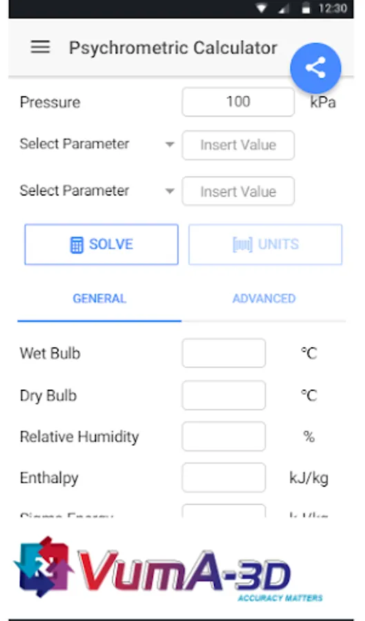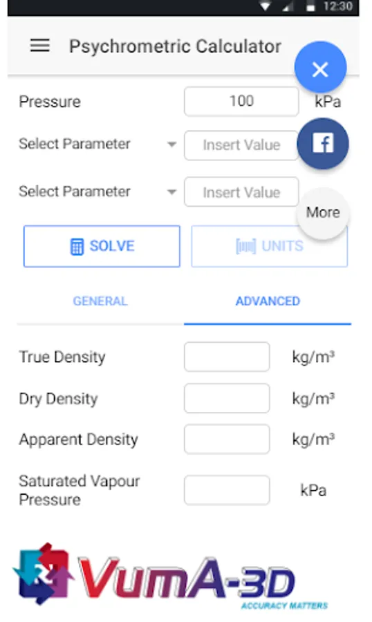 The VUMA3D toolbox allows you to quickly calculate the psychrometric properties of air with high accuracy. Outputs include wet-bulb, dry-bulb, saturated vapour pressure, density, enthalpy and humidity (amongst others). The toolbox will expand and further rule of thumb ventilation calculators will be added in the near future.