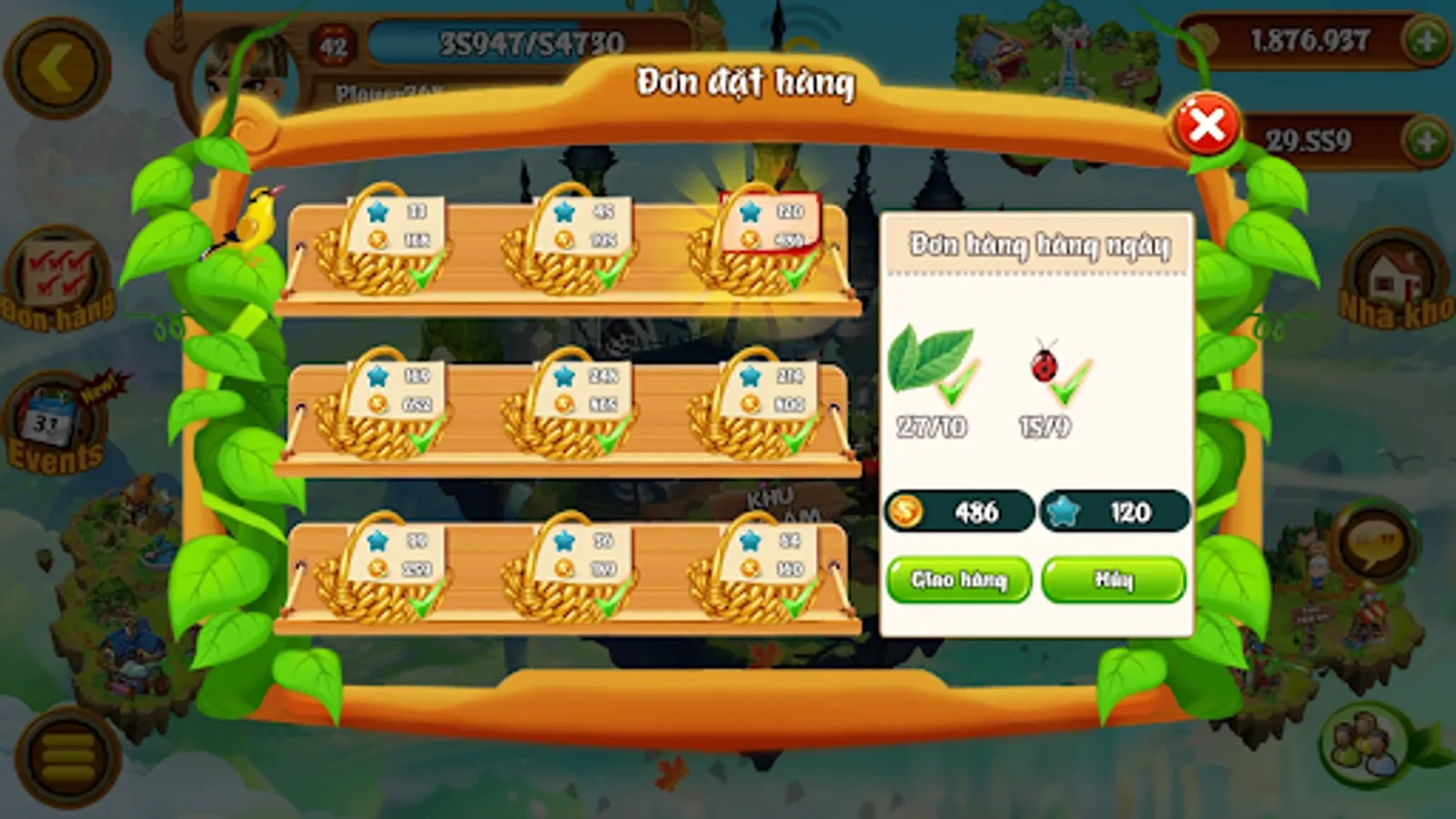 Your daily job will be to plant trees to be as green as a garden in the clouds (the garden on the street), then harvest and produce the finished products and deliver the orders. Pay attention to catch the worms, bugs on the plants because they will reduce the yield of that crop. Also don't forget to buy yourself beautiful pots as they also make your overhead garden more splendid.
