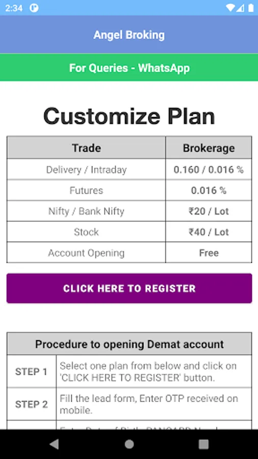 This application helps to open Demat Account in Angel One, Once Demat account open then App allows invest in Stock market and Mutual funds. Angel One formally known as Angel Broking caters to all your financial and investment needs. Now you can invest in stocks, IPO, F&O and do Intraday trading after successfully registering your account.