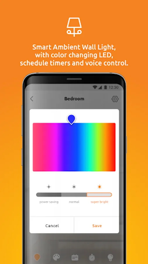 On the app’s interface for smart wall sconces, you can control the light from anywhere, easily select the theme, define your favorite color and brightness for different areas and scenes from fingertips; You can also program and schedule the timer and the ambience including customizing the light hue and brightness levels in Toucan app.