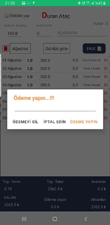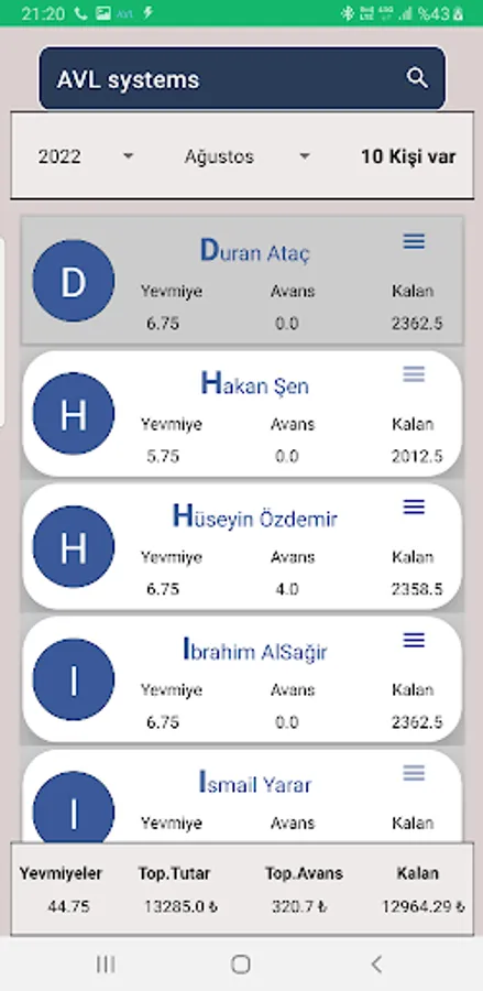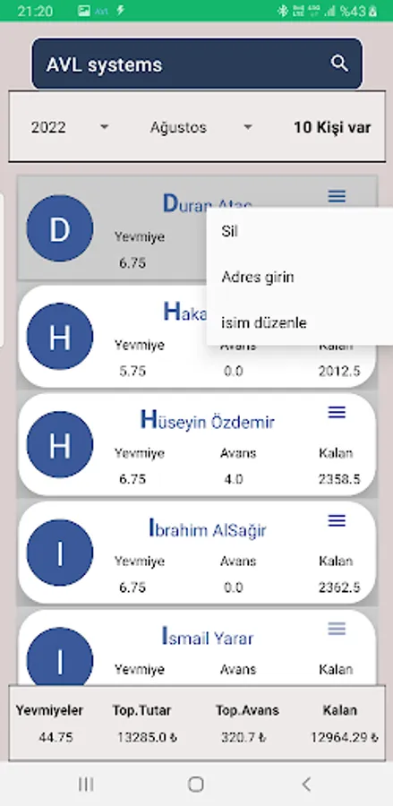 Write down the daily receivables and advances of your workers that you employ in many sectors such as construction, factory or agriculture.