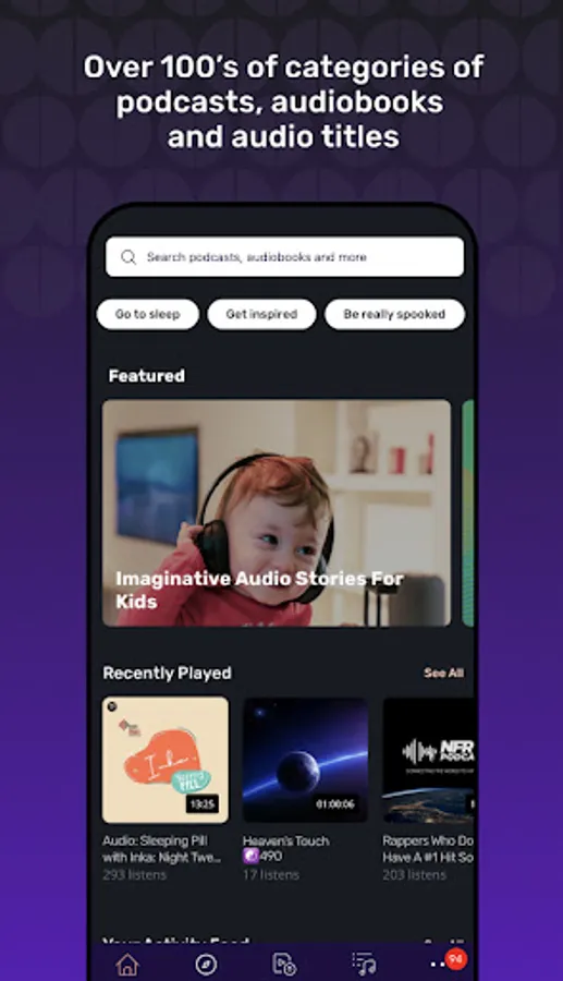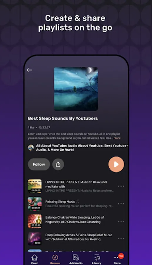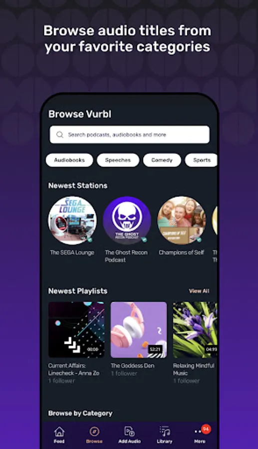 Vurbl has millions of free podcasts, audiobooks, sleep sounds, ASMR, speeches, binaural beats, influencer audio and more. Are you podcasting or just want to record and share instantly? You can host your audio content and build a radio-like station of your own in a snap. Find out what the world is listening to on Vurbl.