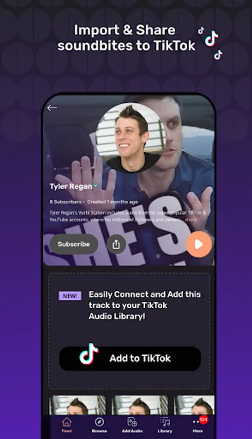 Listen to and clip pieces of free audio across 100's of categories. Audio creators - you can now record and share your audio to TikTok from vurbl.