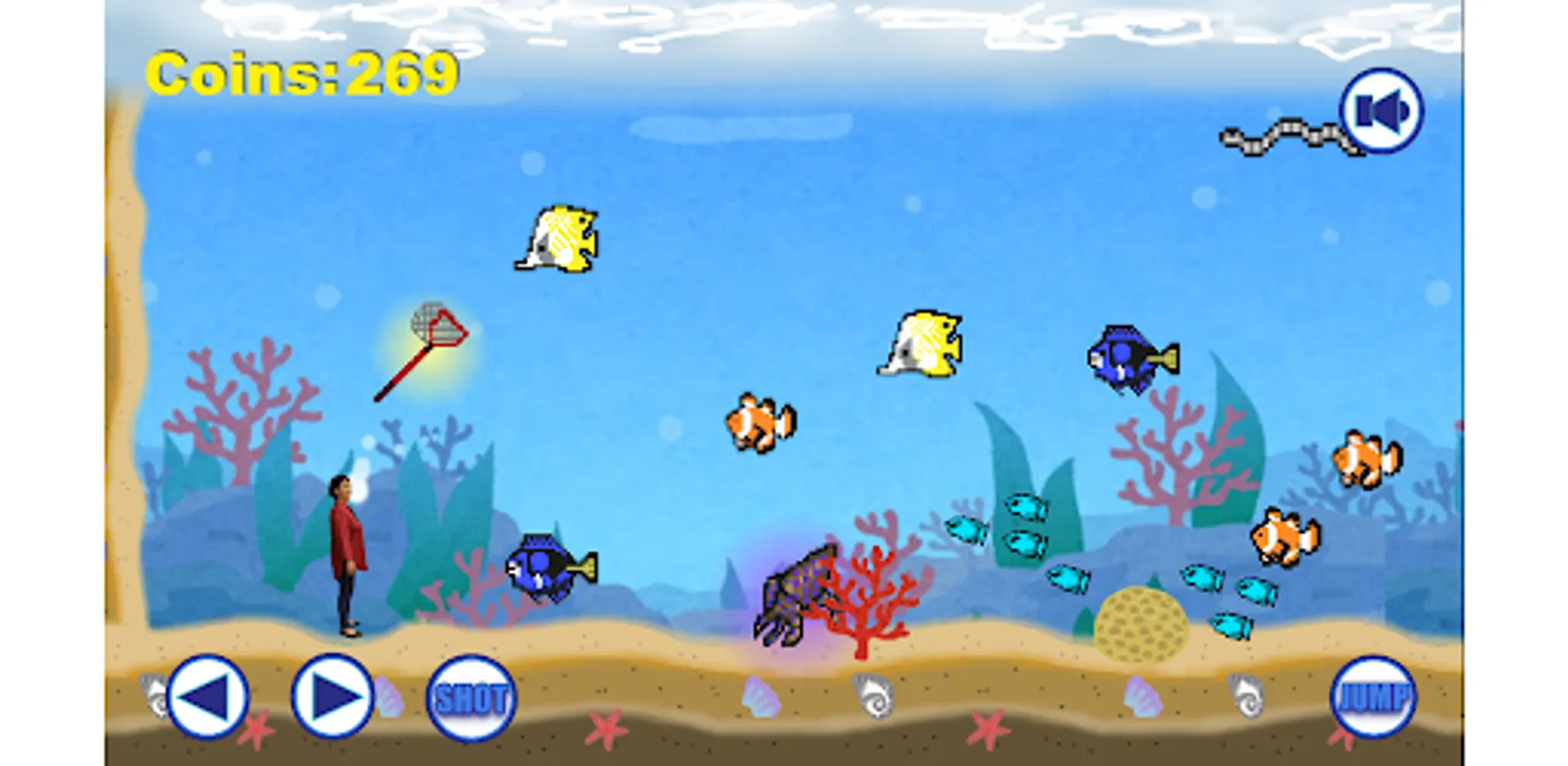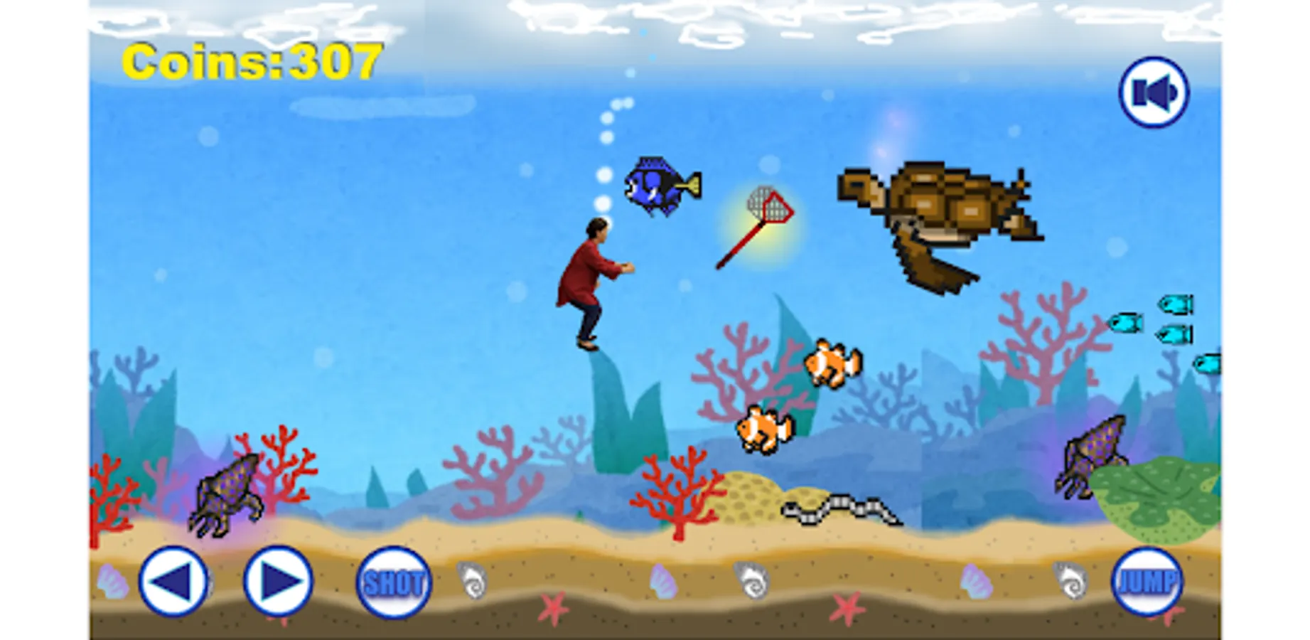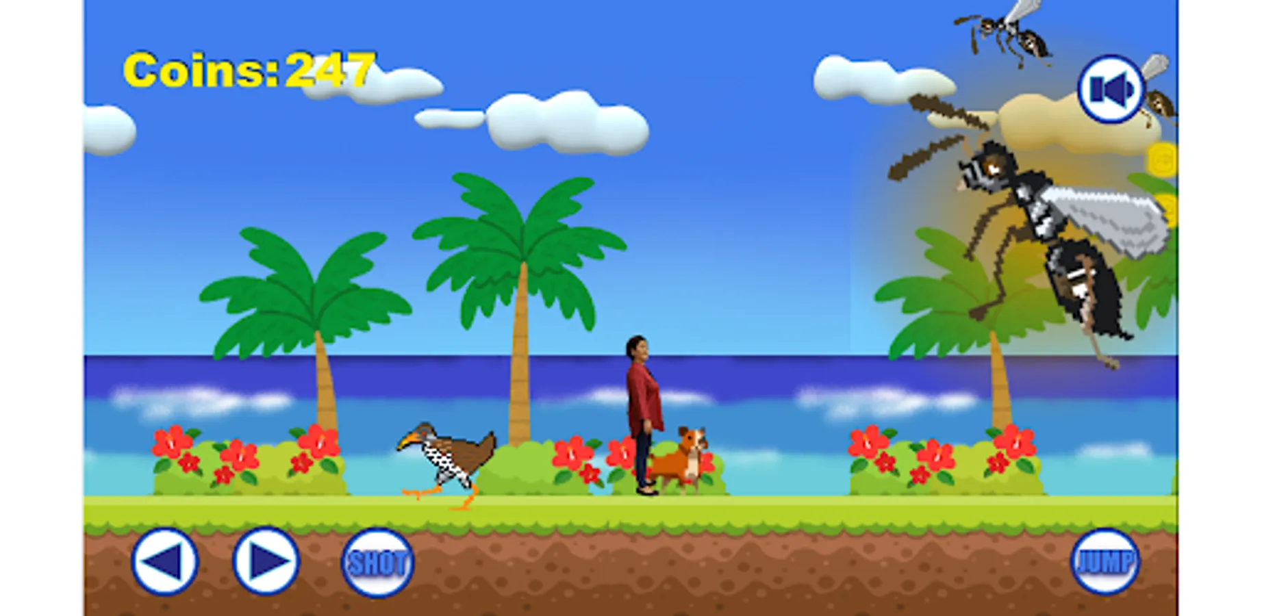 Use the buttons to move forward. When you tap the SHOT button, a red ball will appear, which can be used to defeat Enemies.
