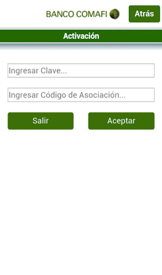 - Enter the 6 digit key Comafi token you generated in the cashier and the association code shown on the ticket