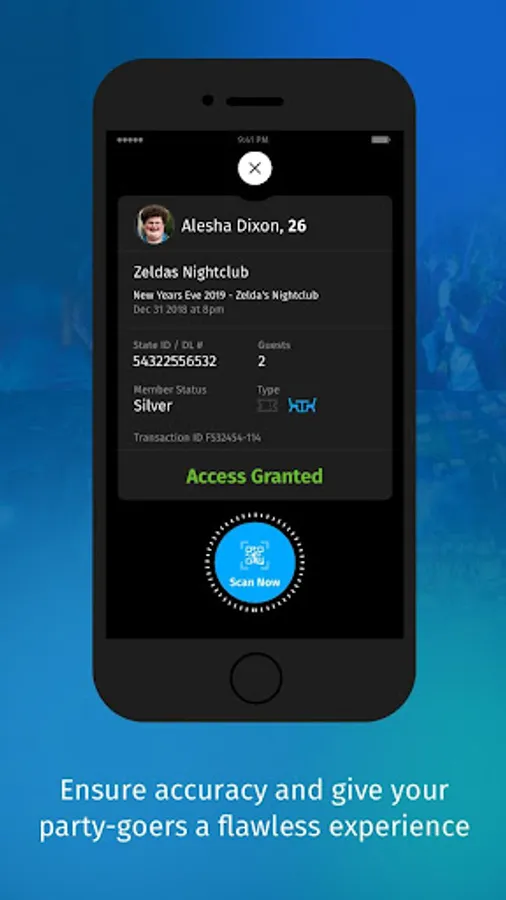 Vuuka Scanner is designed for Venues with trained security guards. A real-time scanner for Identity access verification into venue. Scan and verify identity, purchased information and gender matching with government ID.
