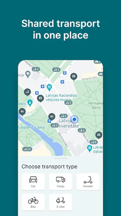 VUUMLY connects to different shared transportation service providers operating in Latvia and displays their devices in real-time in one app. Now it is easier to find the device of your choice, and it will only take you a few seconds.