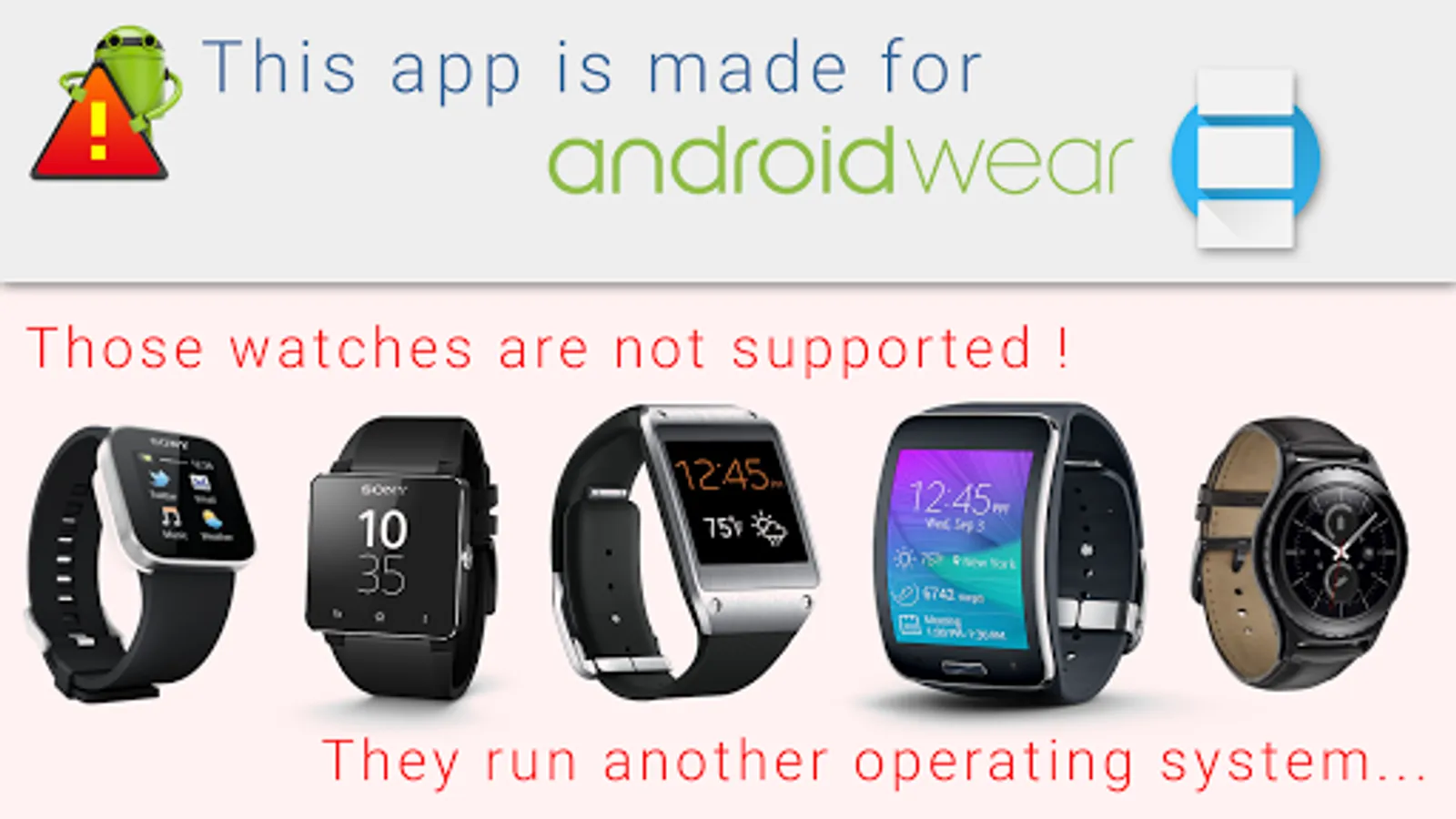 /! THIS APP IS NOT COMPATIBLE WITH SAMSUNG GEAR RUNNING TIZEN OS /!