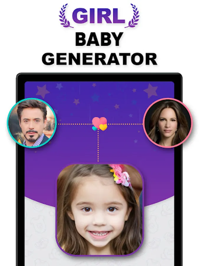 “Baby Maker - Future Baby Generator” uses advanced artificial intelligence (AI) algorithm. We use the newest facial recognition technologies to analyze faces of Mommy and Daddy and generate an image of your future baby. You can see the baby face with this app “Baby Maker - Future Baby Generator”.