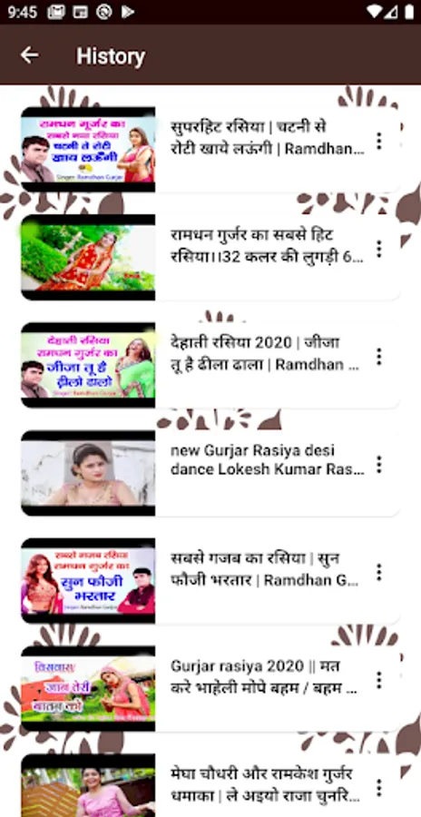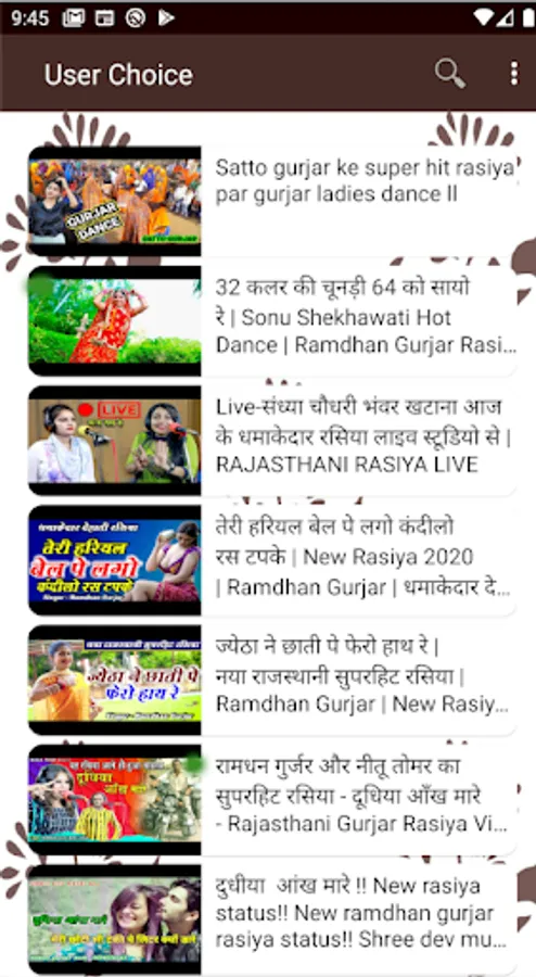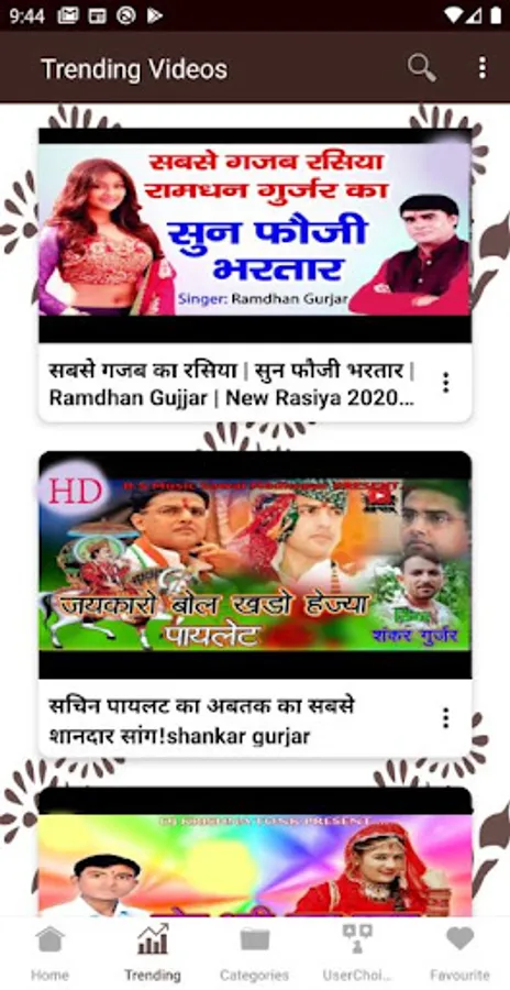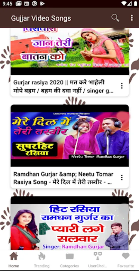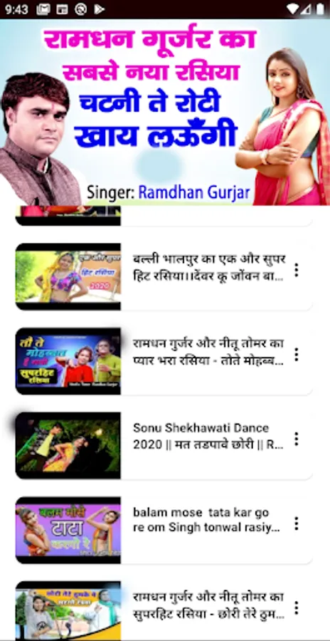 π Everyday new gujar video songs, ramdhan ke rasiya are added so that you get the latest ππ»πΊπ½collection of gujjar new songs. It has different categories like rasiya, album songs, DJ, traditional songs, and more. You can choose any kind of gujar song and enjoy it without worrying to search it. πΊ πΈ