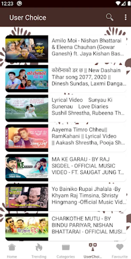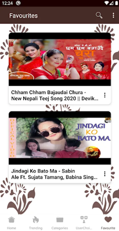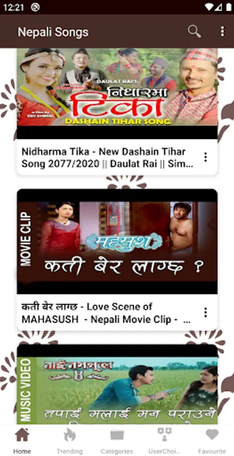 You can save any nepali video song as favourite and watch later. All Nepali geet are categorized under different categories like Nepali comedy, nepali movie song like that there are 15+ categories so that it will be very easy for you to find a nepali song that you love 😍