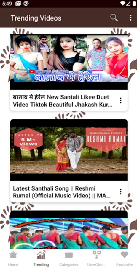 Your Santali Video app has 20000+ 💛 collection of Santali songs, Santali DJ along with beautiful collection of old and new Santali video. You can save any Santali video song as favorite and watch later.