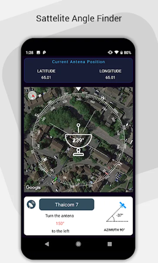 It is tough job to find the right angle in which you should place your TV Antenna to align it with satellite. Here using this app you can very easily find the perfect spot with accurate angle to setup you TV Antenna in align with satellite. It is the perfect TV Satellite Angle Finder. This TV satellite finder app provides accurate Azimuth, Elevation, Polarization, LNB Tilt, and range with respect to your location (based on GPS).