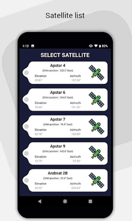 Please note that this app uses your phone sensor to get your azimuth so satellite position calculation depends on the accuracy of your mobile sensors.