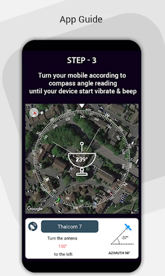 # Rotate your phone until it vibrates on the accurate angle for satellite setup.