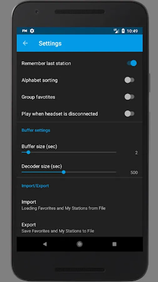 - You can save your favorite stations to the Favorites list. Also you can browse History (list of the stations you've listened to).