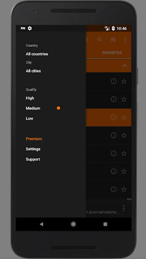 You can select the most suitable stream quality for you - using stream quality selector. Poor connection? Playback stops too often? Select traffic efficient mode (Low quality) - even in this mode sound quality stays very high. If you have stable and fast internet connection - listen to the radio at its best sound quality (High and Medium stream quality). Sound quality stays great in any mode!