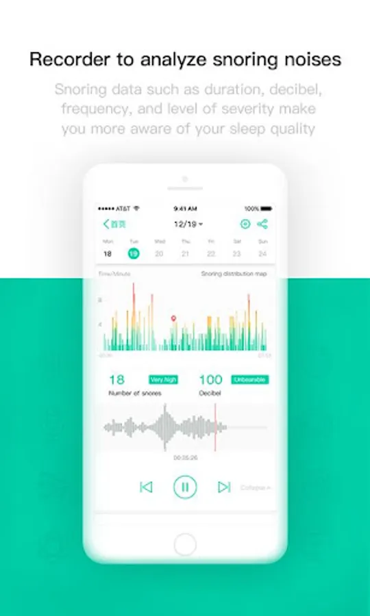 - Advanced squeak detection algorithm, and record hum sound samples, ready to play back to understand snoring