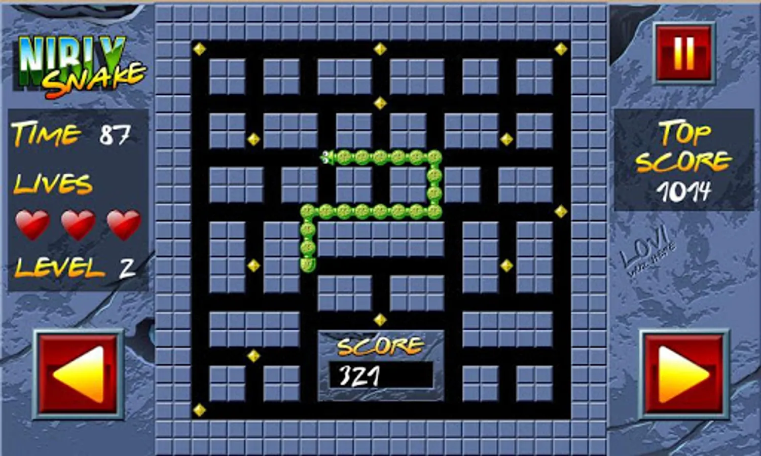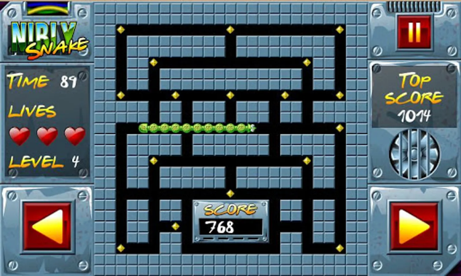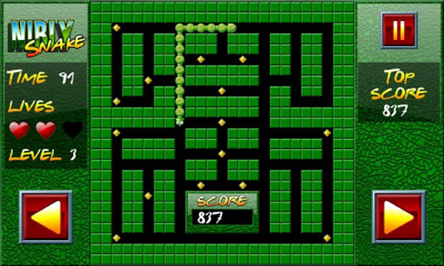 Your goal is to eat up every piece of food dropped all over the maze. Be careful not to cross the body of your snake nor to run out of time otherwise you lose a life.