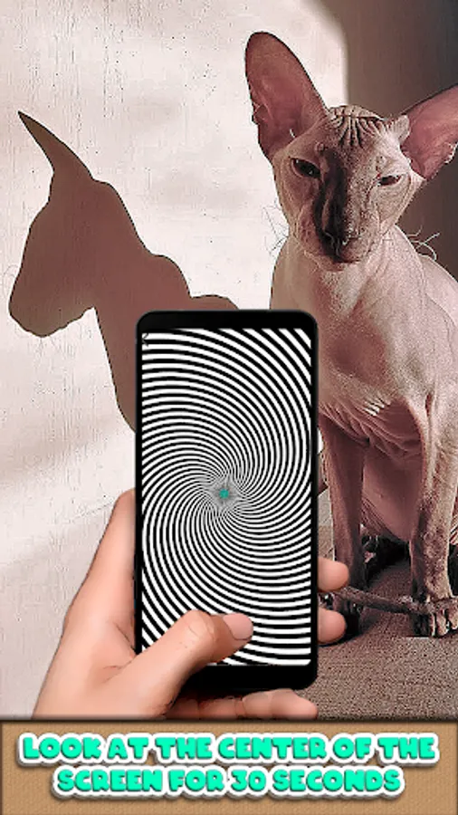 Instructions: Select one of the effects in the selection menu and look at the center for 30 seconds. Try not to take your eyes off. After 30 seconds, translate the look to any subject. Use the "Timer" button to turn on / off the automatic shutdown effect. Take short breaks to rest your eyes.