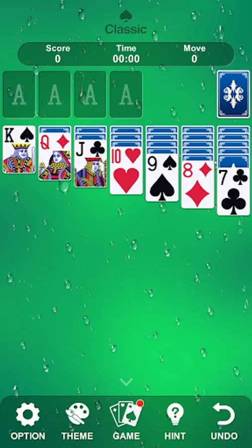 Classical card game Solitaire. It also known as Klondike Solitaire or Patience card game.