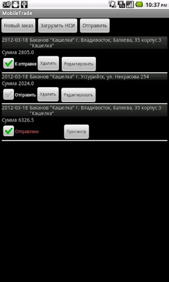 Program to automate torogovyh agents. Conducted base products with residues and prices, as well as base outlets with debitorsokoy debt. Automated loading NSI (Products and Buyer's Guide.) There is also a discharge of orders to be processed by any program.