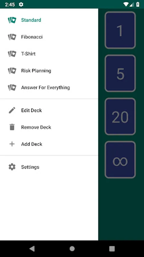 - Add/Edit/Remove custom decks or edit/remove built-in ones