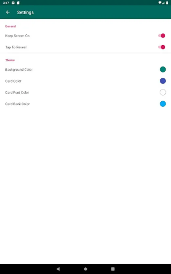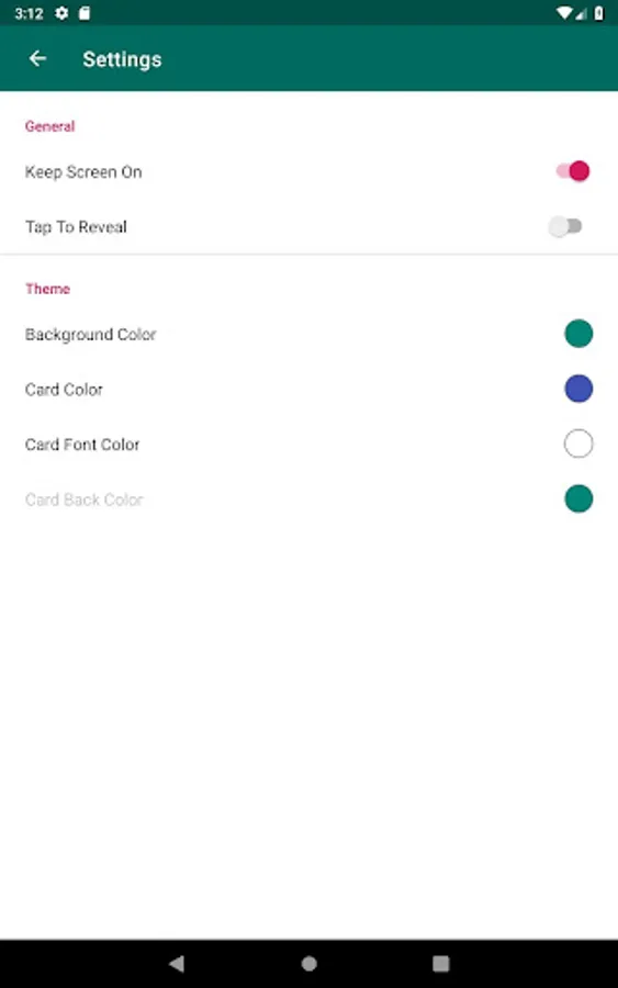 - Ability to keep the screen on when cards are on display