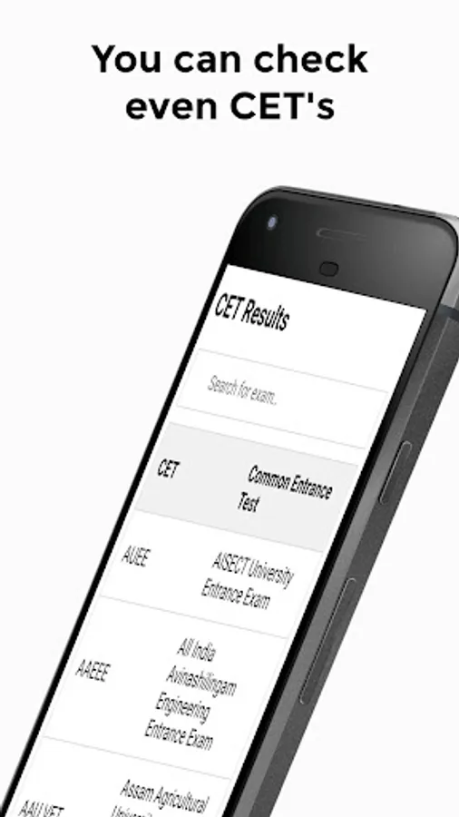 You can find all exam results starting from Class 10 - Ph.d and Common Entrance Test across all Universities,States in India