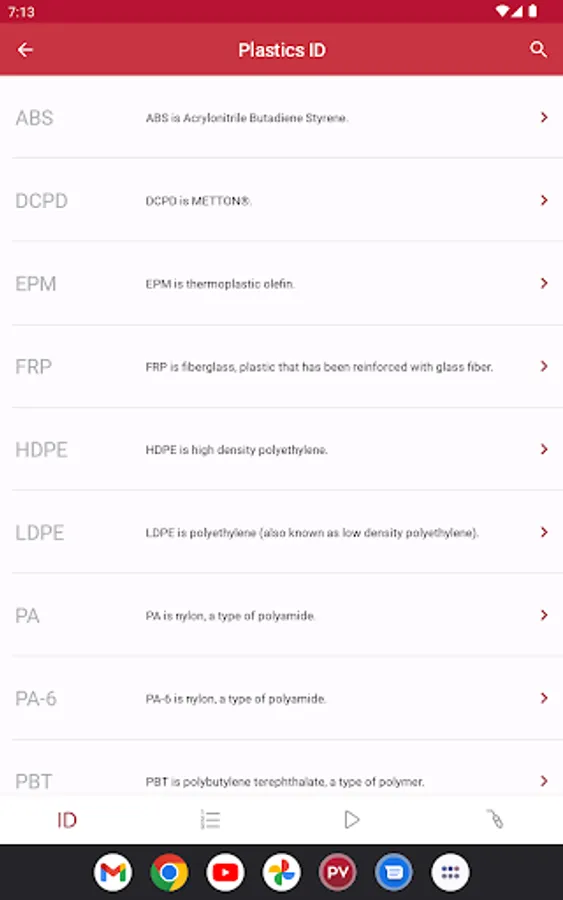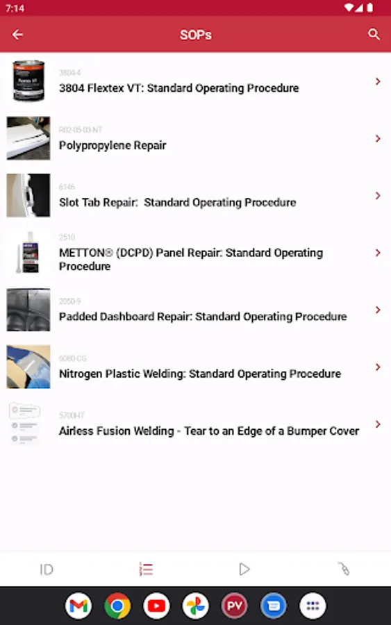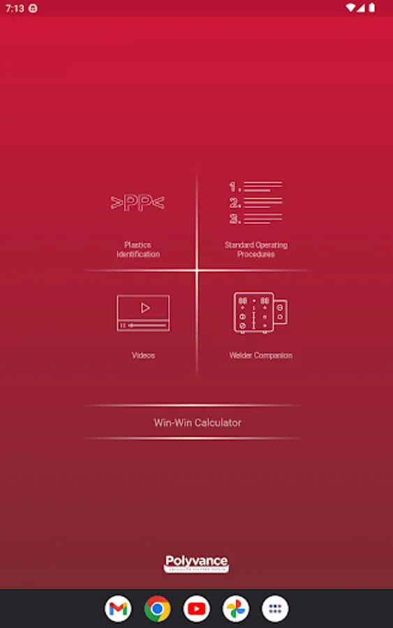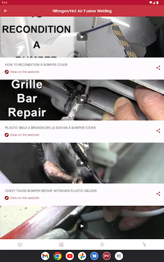 This app helps you identify and repair plastics. There are four main sections of the app: Plastics Identification, Standard Operating Procedures, Videos, and Welder Companion.