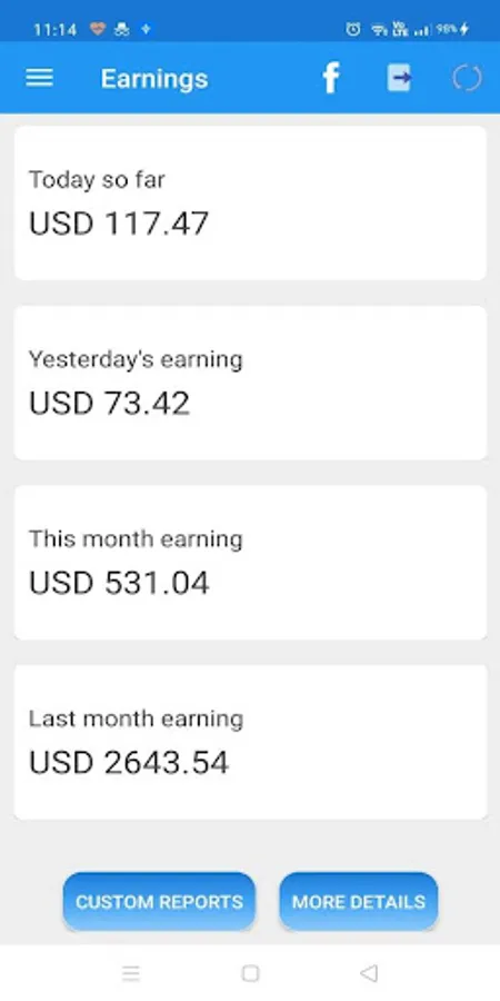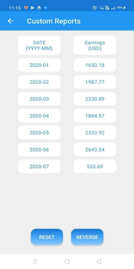3. Custom Reports : Application can generate custom reports. User need to select start date & end date to generate daily or monthly earning reports.