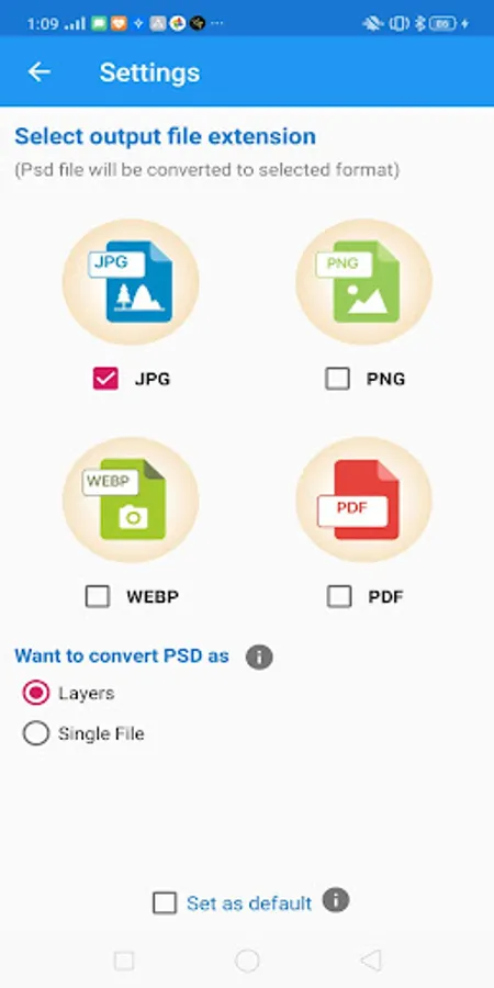 1. Save/convert .psd(Adobe Photoshop) file as .png, .jpg, .webp, .pdf into mobile device.