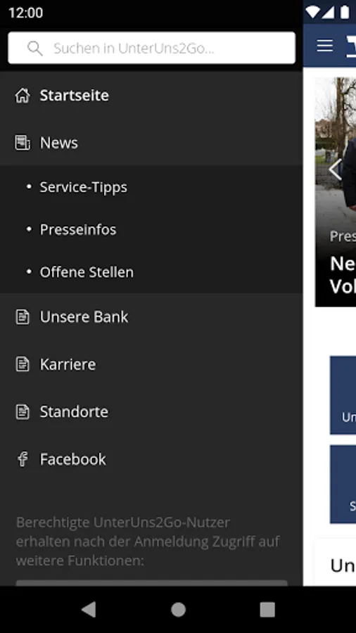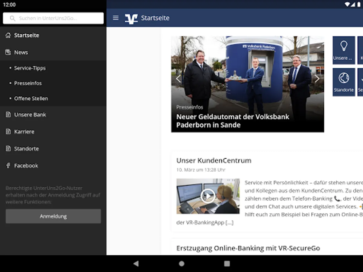 UnterUns2Go is the mobile communication medium of the VerbundVolksbank OWL eG, with which you always stay up to date. As a fast network bank, we would like to use the app to inform our members, customers, business partners, applicants and our team about our bank, current developments and information, our digital services, our range of products and services, events and our job vacancies.