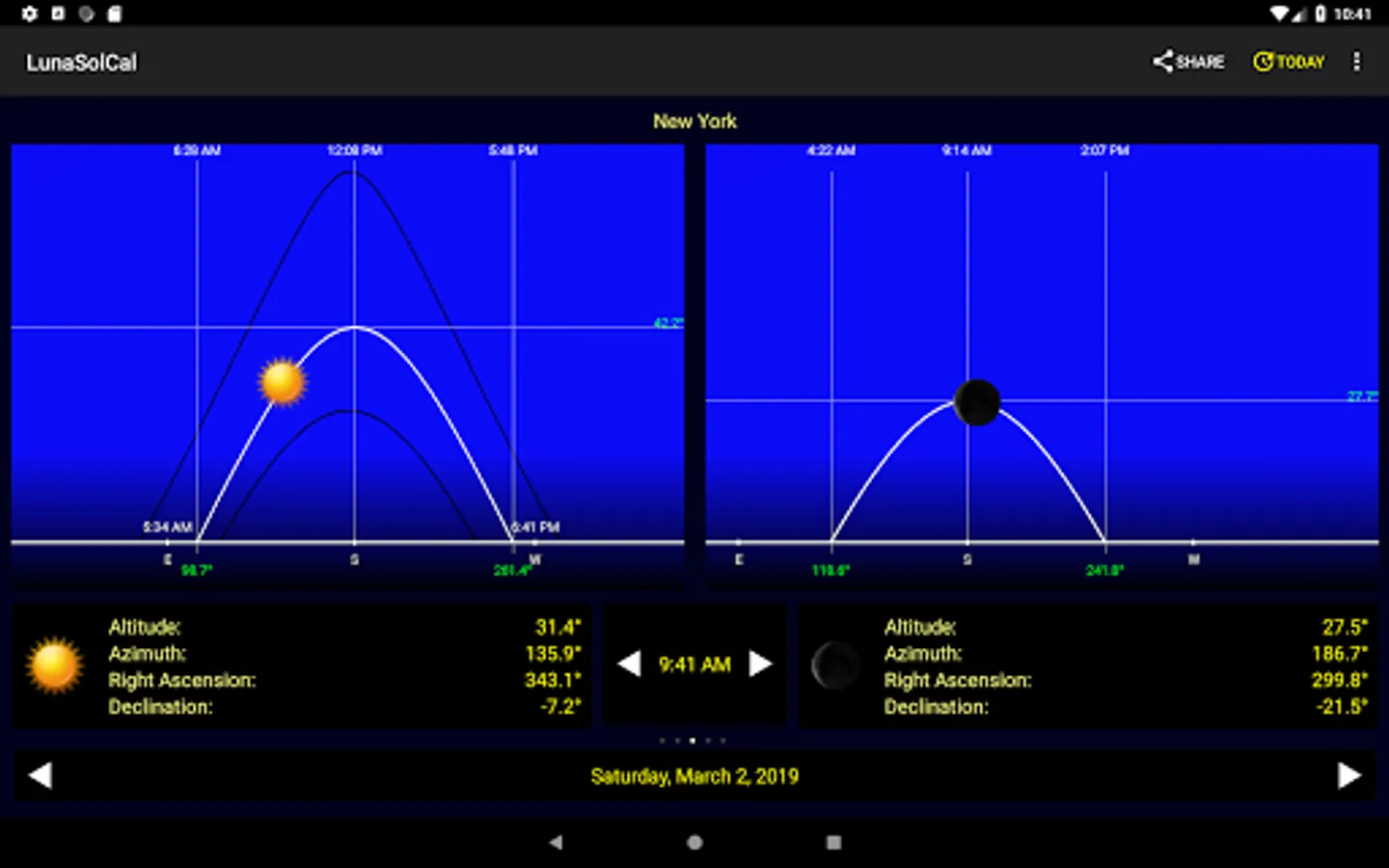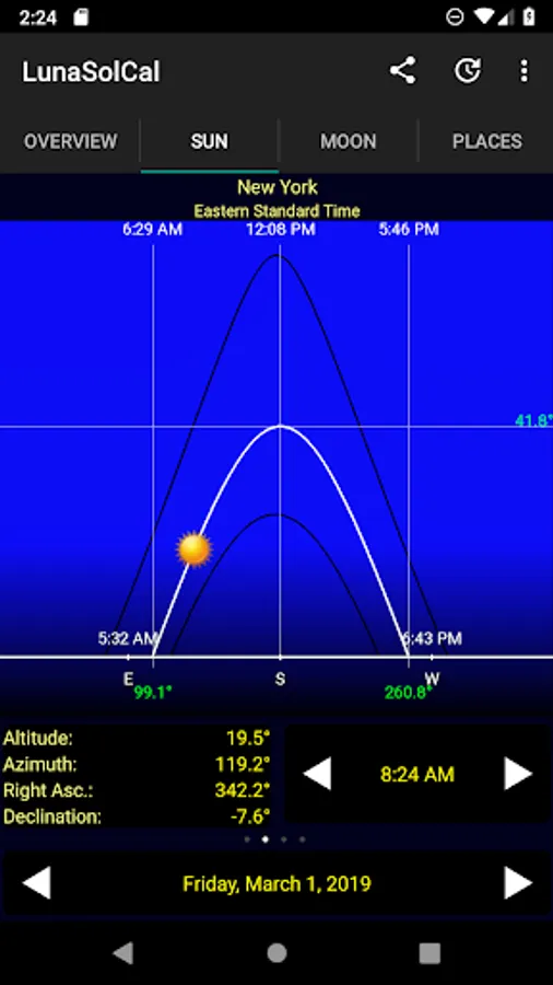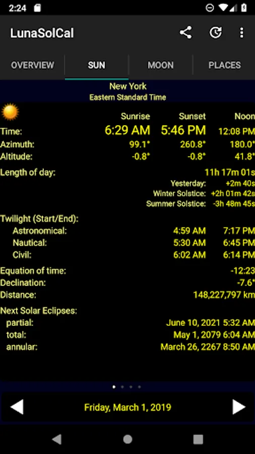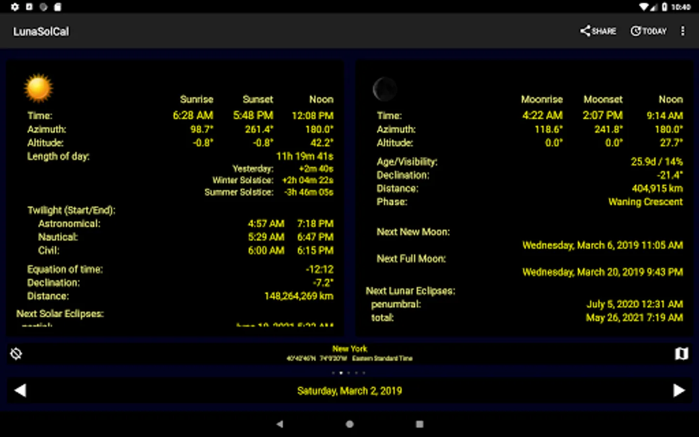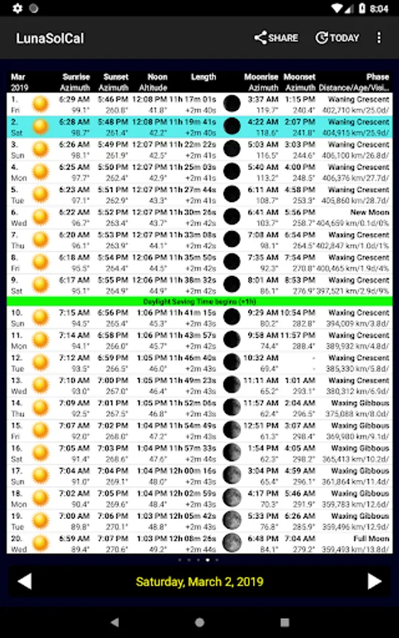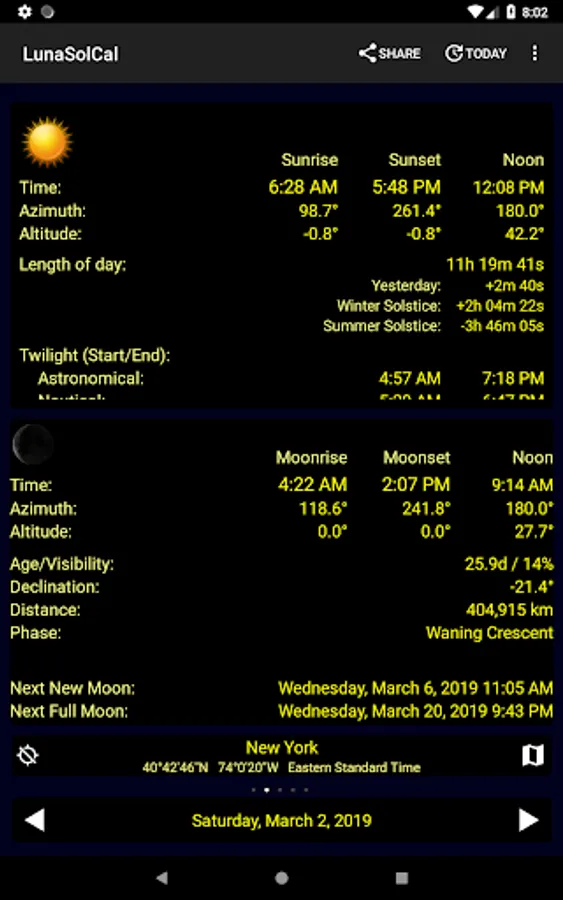 Please note that the accuracy of the calculations decreases for locations north of 65°N and south of 65°S