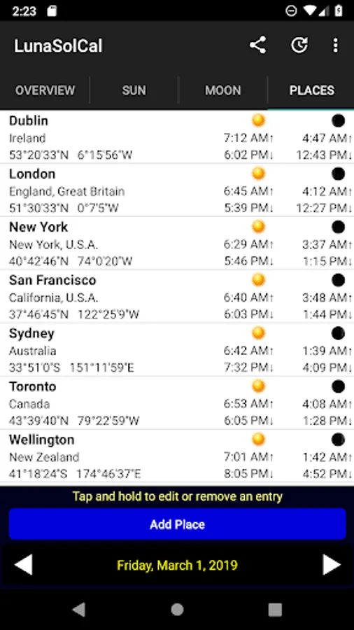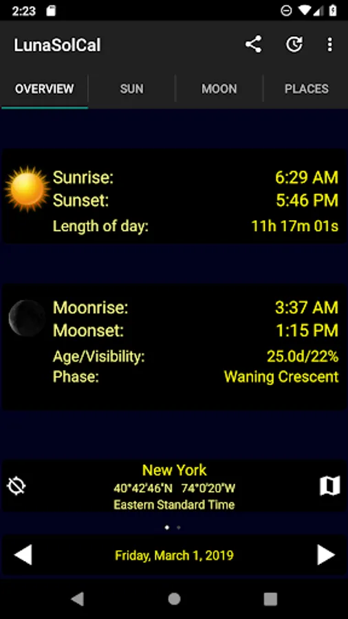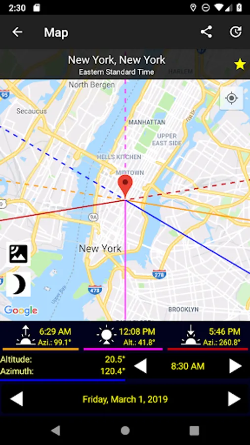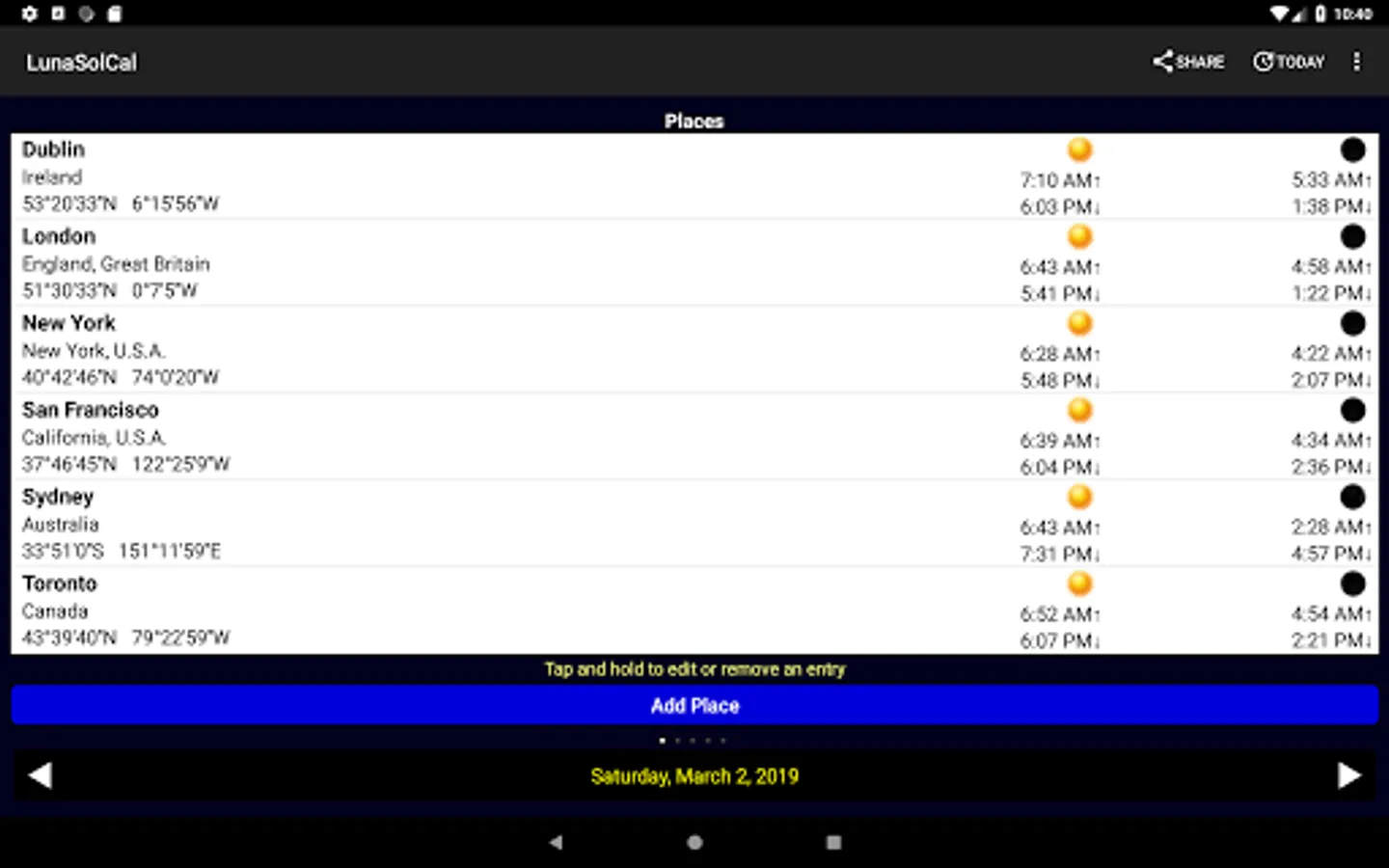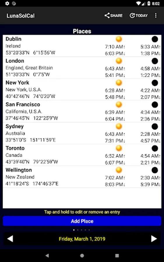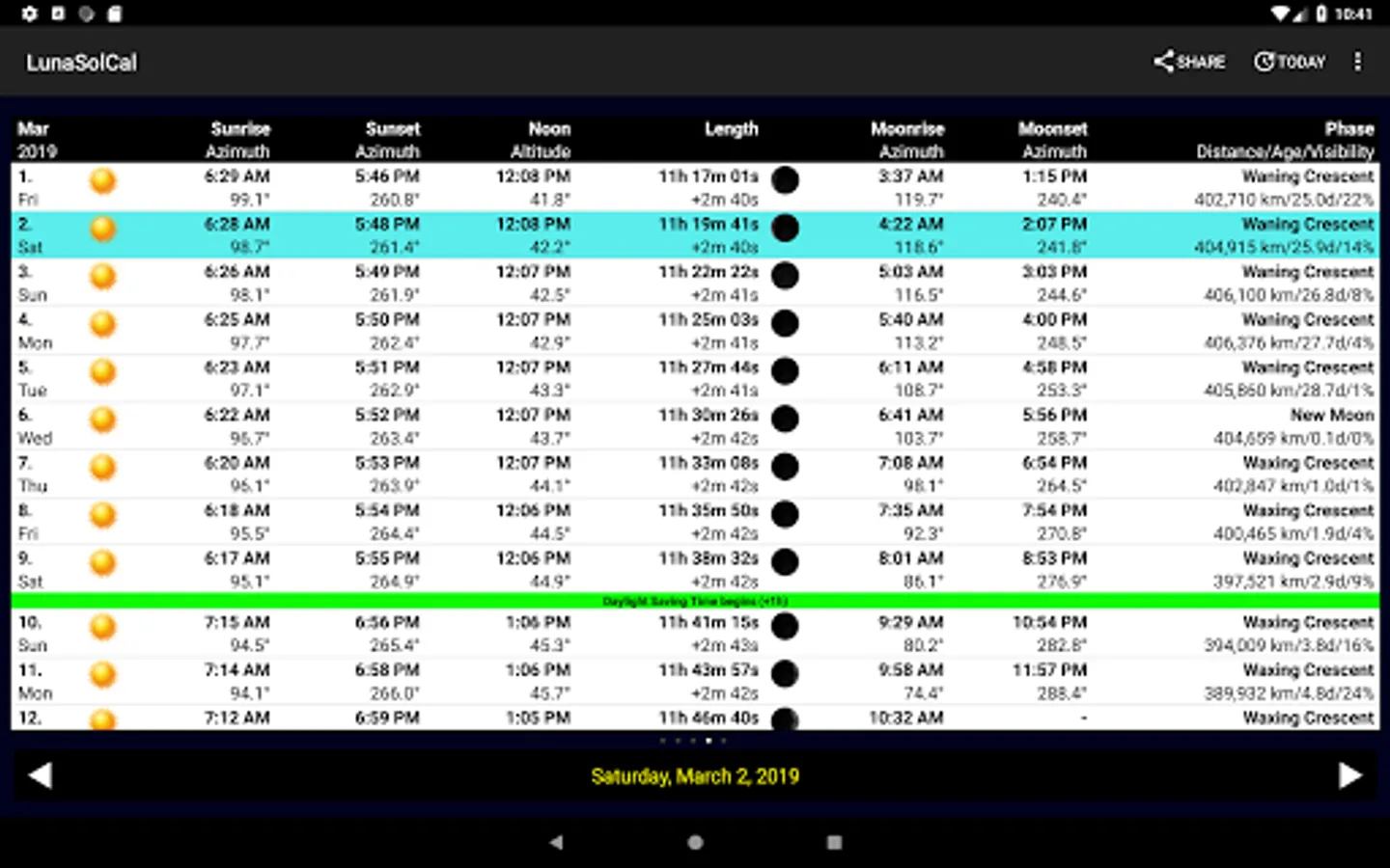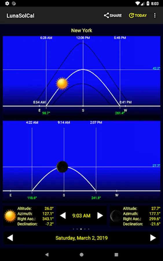 Please note that the accuracy of the calculations decreases for locations north of 65°N and south of 65°S
