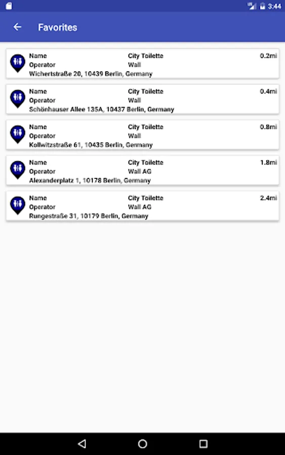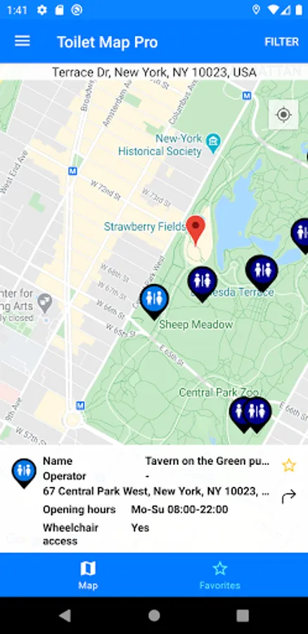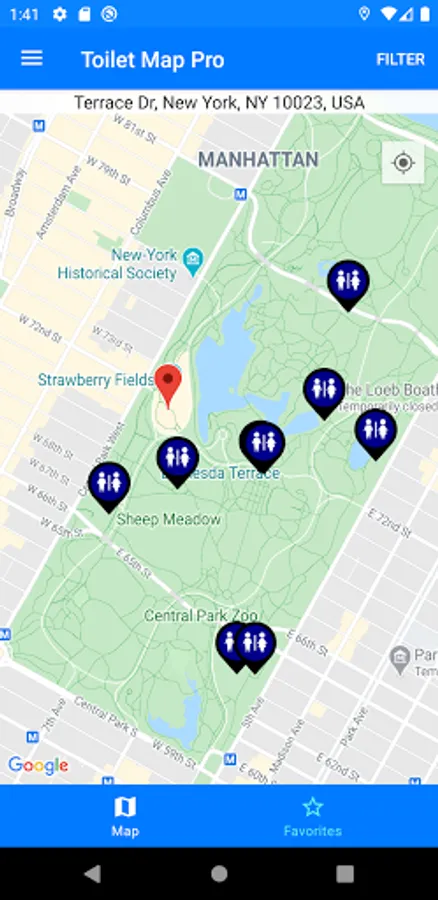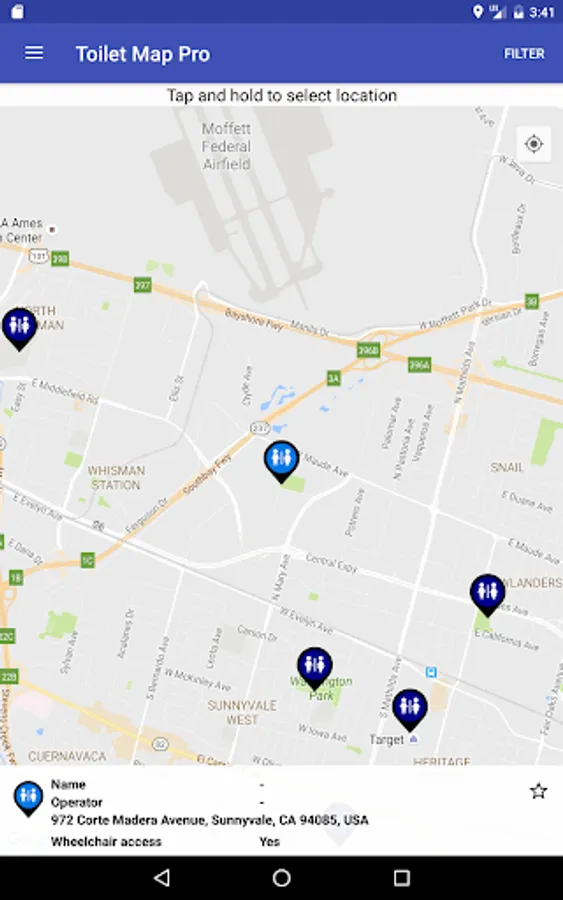 - You can store toilet locations for future reference which is useful when planning a trip.
