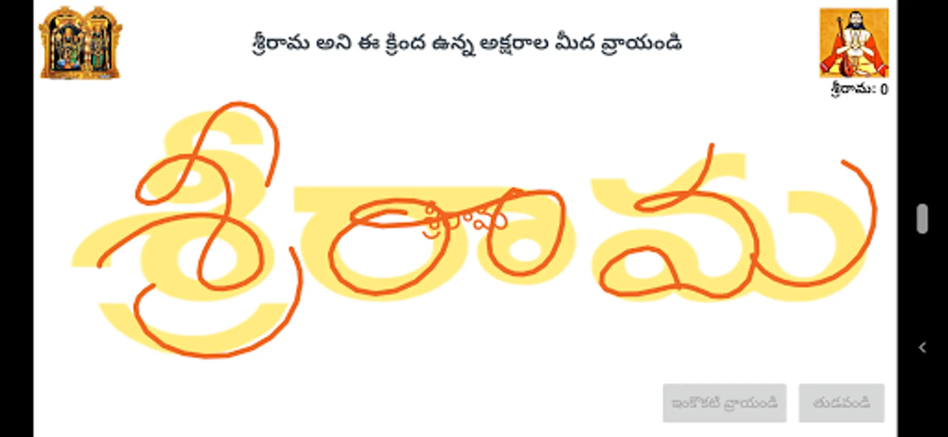You can write Sriramakoti in Telugu with your own hands in this application.