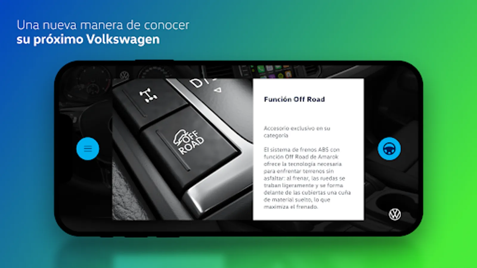 With the Volkswagen augmented reality app you can see the car in detail, explore it and even see how it would look in your garage. Project the vehicle onto a flat surface.