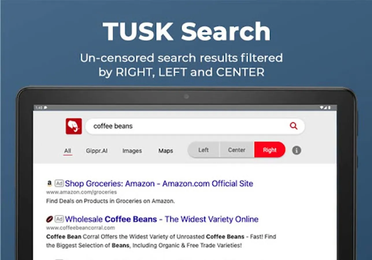TUSK Search is also great for schools, education and research with search result transparency that lets you see all sides easily.