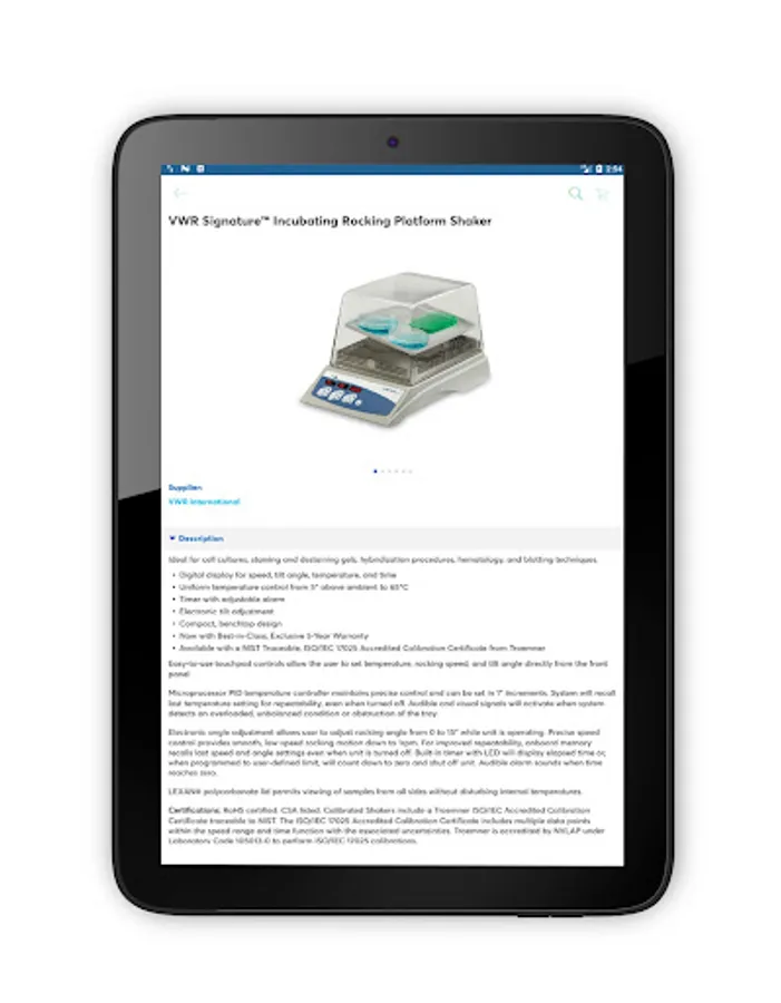 The VWR, part of Avantor app is an e-Commerce application that provides an alternative to browsing and purchasing directly from vwr.com. Customers who prefer to use installed mobile apps vs a desktop browser will benefit from this easy-to-use app that features functionality such as: search, saving favorites, and quote order processing. In addition to core e-Commerce capabilities available on vwr.com, the app provides product search via barcode scanning with your device’s camera as well as the ability to search via voice with Google Assistant. There are also some limited offline capabilities for those users that don’t have a consistent internet connection. This app is not intended for customers who are integrated with VWR through a business-to-business application (punchout catalog) or for customers with highly customized ordering requirements. Currently the app is available in India.