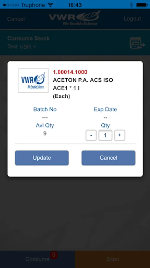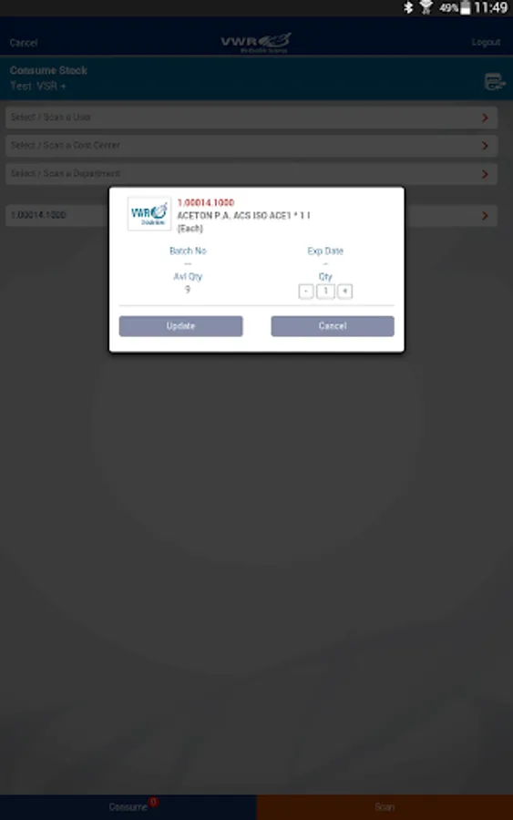 The mobile version of VSR+ technology is a warehouse and inventory management system that supports VWR products as well as third-party products from any vendor. VWR Lab Supplies Management addresses daily tasks such as picking of goods, re-ordering products, as well as correcting stock levels.