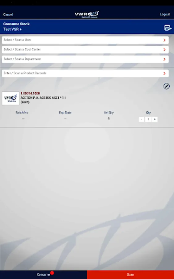VWR Lab Supplies Management is the mobile version of our web-based Laboratory Supplies Inventory Management, powered by VSR+ technology. VWR Lab Supplies Management powered by VSR+ technology provides 360˚ visibility to your laboratory supplies inventory, from the scientist’s bench to all stocking points in your supply chain.