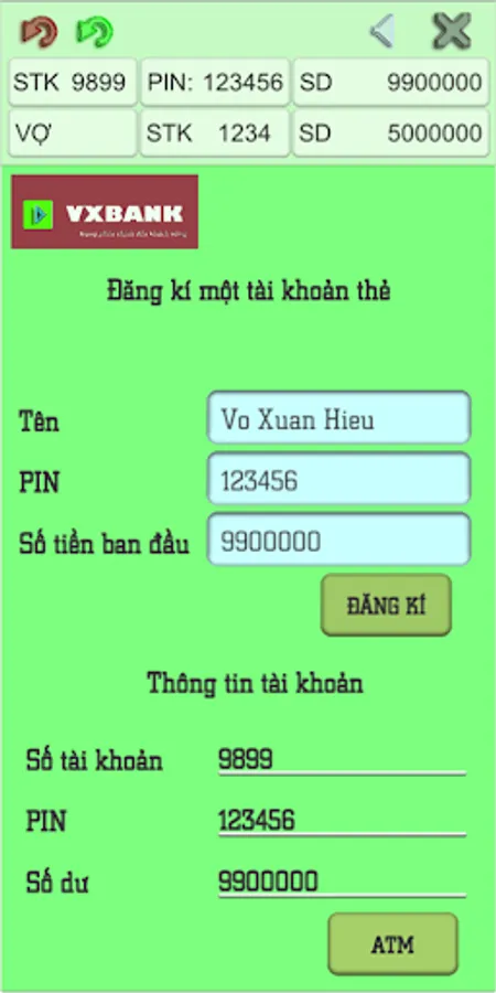 Note: In practice to pay bills, you need to register internet banking at the bank where you create the card.