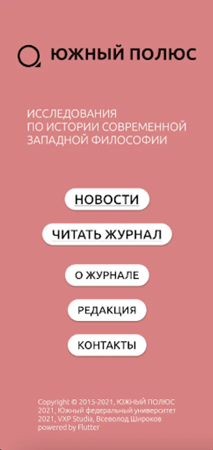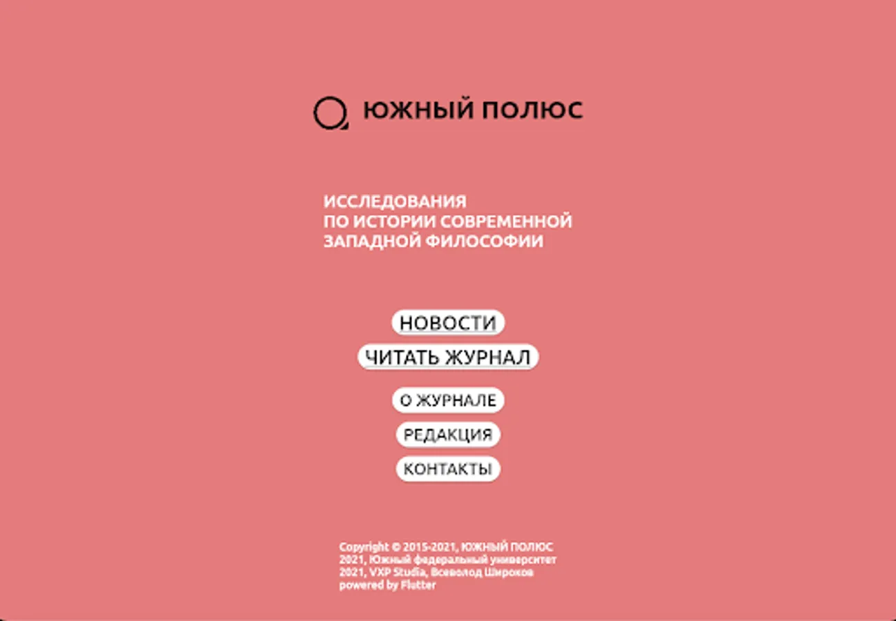 The SFedU Research Laboratory for the History of Contemporary Western Philosophy presents you with the official mobile application of its online publication - the peer-reviewed journal “South Pole. Studies in the History of Contemporary Western Philosophy ”. This journal and its concept were conceived by our colleague and researcher of the modern history of philosophy, Roman Gromov.