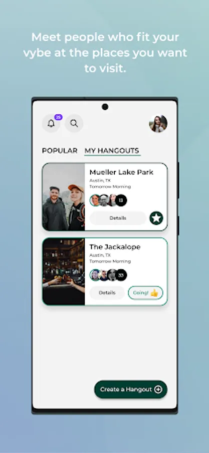 Meet people who fit your vybe at the place you want to visit.