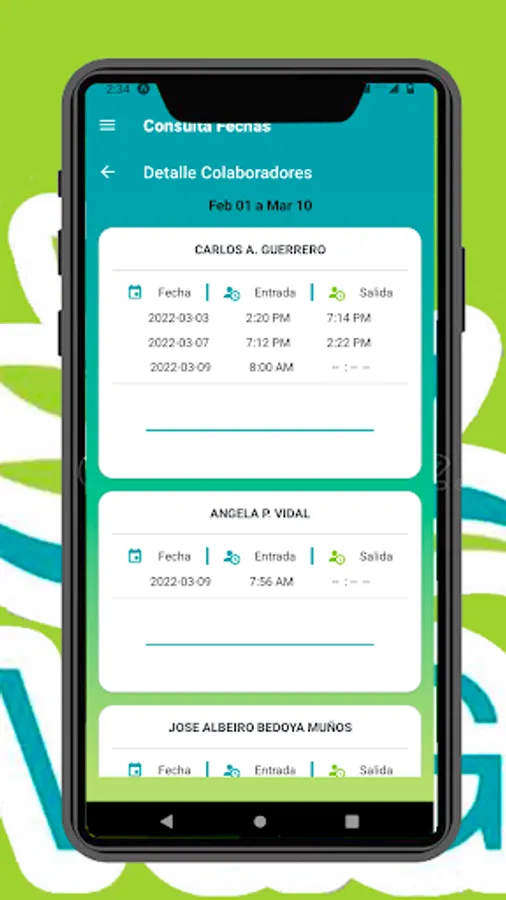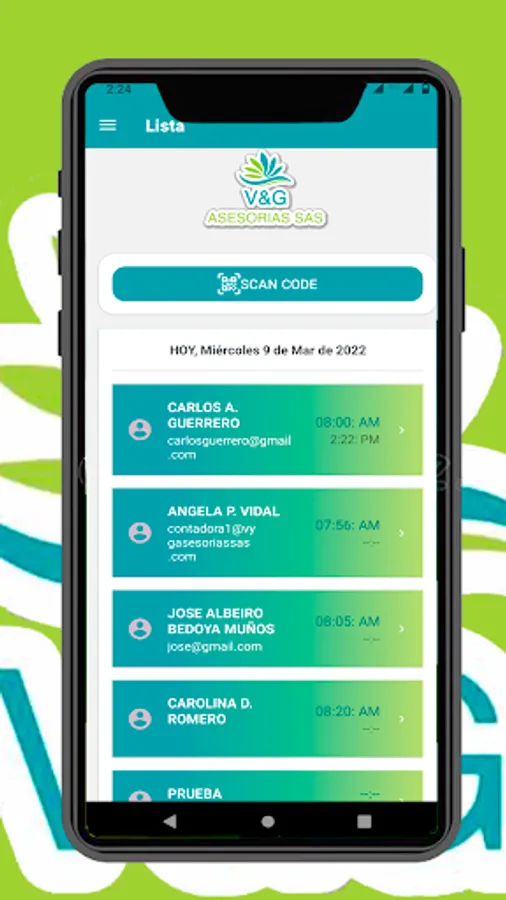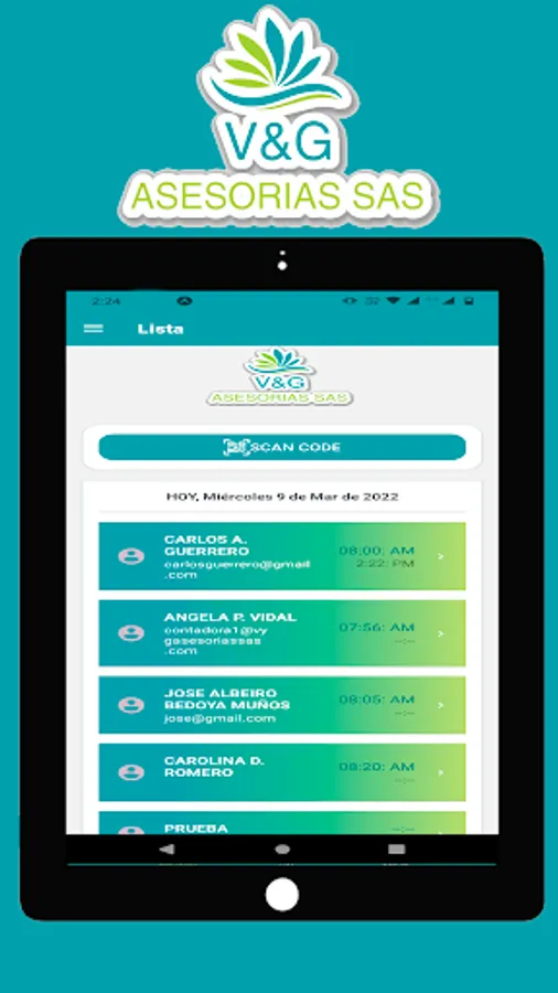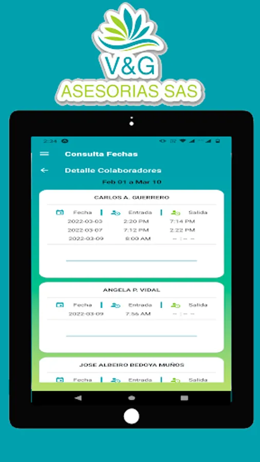 Control and management of working hours registration within the facilities of V&G Asesorías and control of daily tasks only for users registered in V&G Asesorías SAS