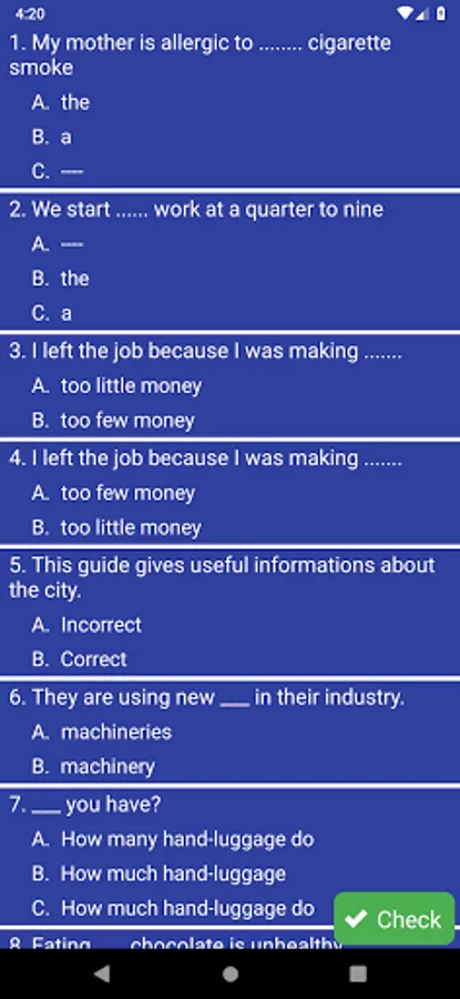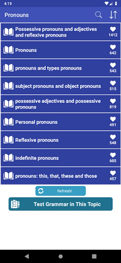 Each topic has many Grammar Tests and Grammar questions for you to practice the grammar exercise everyday.